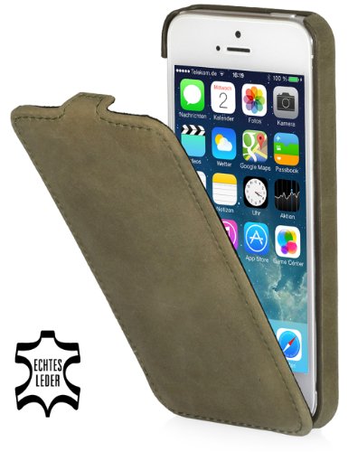 Détails sur le produit StilGut, UltraSlim, pochette exclusive de cuir véritable pour l'iPhone 5 d'Apple, rabattable, Version Old Style, en vert