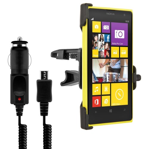 Support pour grille d'aération pour Nokia Lumia 1020 avec coque adaptée + chargeur. Utilisez vous aussi votre portable comme GPS. Qualité par kwmobile.