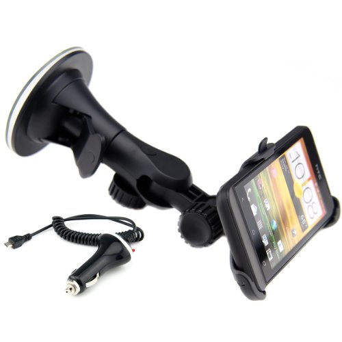 Détails sur le produit Support pour pare-brise pour HTC One V avec coque adaptée + chargeur - Utilisez vous aussi votre portable comme GPS! Qualité par kwmobile.