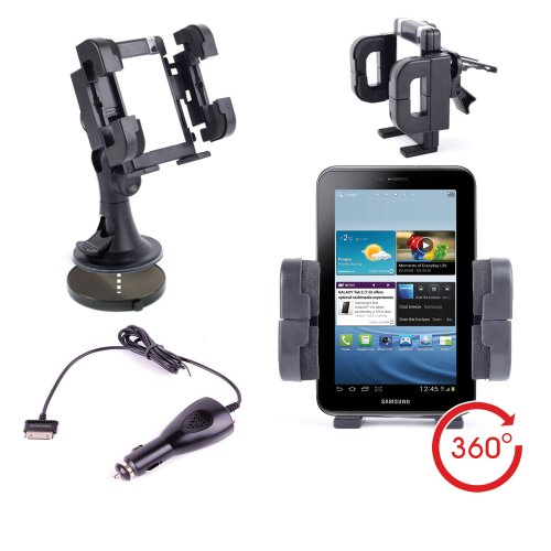 Détails du produit d' Support Voiture Multifonction 3 en 1 DURAGADGET pour Samsung Galaxy Tab (7.0) Wi-Fi P3110 et Samsung Galaxy Tab 2 (7.0) P3100 - Support grille d'aération, pare-brise et tableau de bord + chargeur allume-cigare BONUS - Garantie à vie